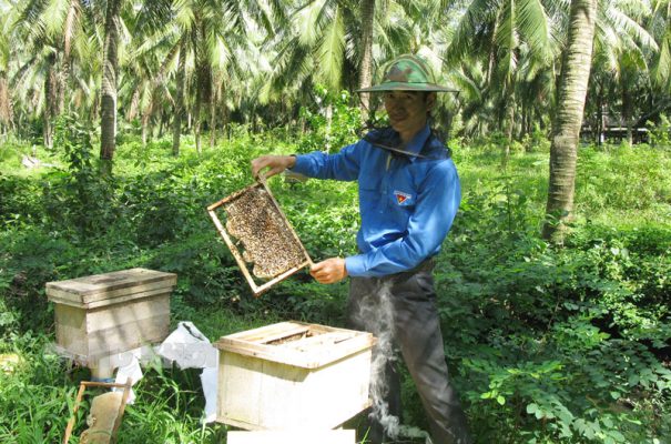 Tham quan trại nuôi ong, thưởng thức trà mật ong, kẹo dừa và trái cây miệt vườn.